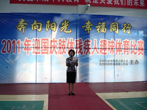 为了积极响应市残联2011年关于开展庆祝建党90周年“奔向阳光 幸福同行”残疾人系列文化活动的通知精神,迎接创建全国文明城市检查验收。克拉玛依市残联、市肢体残疾人协会于9月27日在克拉玛依市第三小学举办了“奔向阳光、幸福同行”肢体残疾人趣味体育比赛活动。