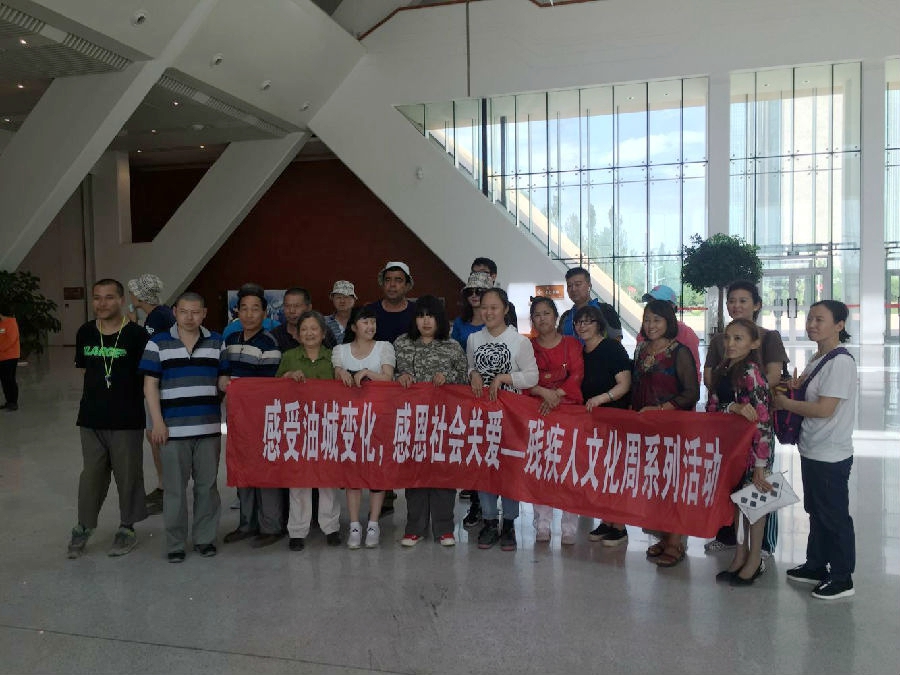 在景区,导游细心地为残障人士讲解每一处的景点,让他们快乐的享受着从未有过的体验,很多残疾人不禁感慨道:“这是第一次出这么远的门,不仅有志愿者陪我们,还为我们提供这么贴心的服务,让我们能够轻松游玩,欣赏身边的美景,了解油城的历史,今天玩得很开心,谢谢党和政府对我们残疾人的关怀。”